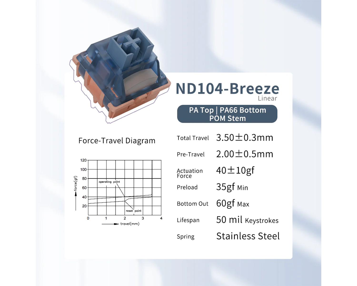 Dahili hesap makinesi ekranı, ambiyans aydınlatması ve ofis kullanımına özel anahtarlarıyla ND104, hem şıklığı hem de konforu bir araya getirerek akıcı, sessiz ve net bir yazım deneyimi sunar.