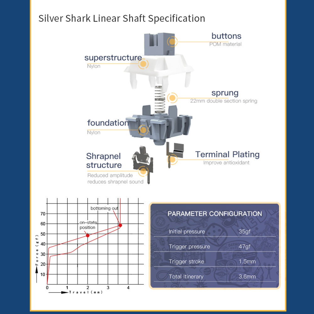 Top98, özelleştirilmiş mekanik switchlere sahiptir. Darmoshark, hızlı tetikleme yanıtı ile pürüzsüz linear/tactile hareket için bu switchleri modifiye etmiştir.