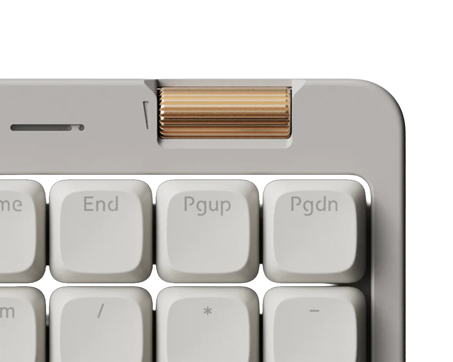 Üst kısımda bulunan silindir ses kontrolü sayesinde sesi hızlı ve hassas şekilde ayarlayabilirsiniz. Akıcı dönüş hissiyle kullanım kolaylığı sunarken, yazım veya oyun sırasında dikkatinizi bölmeden pratik kontrol sağlar.