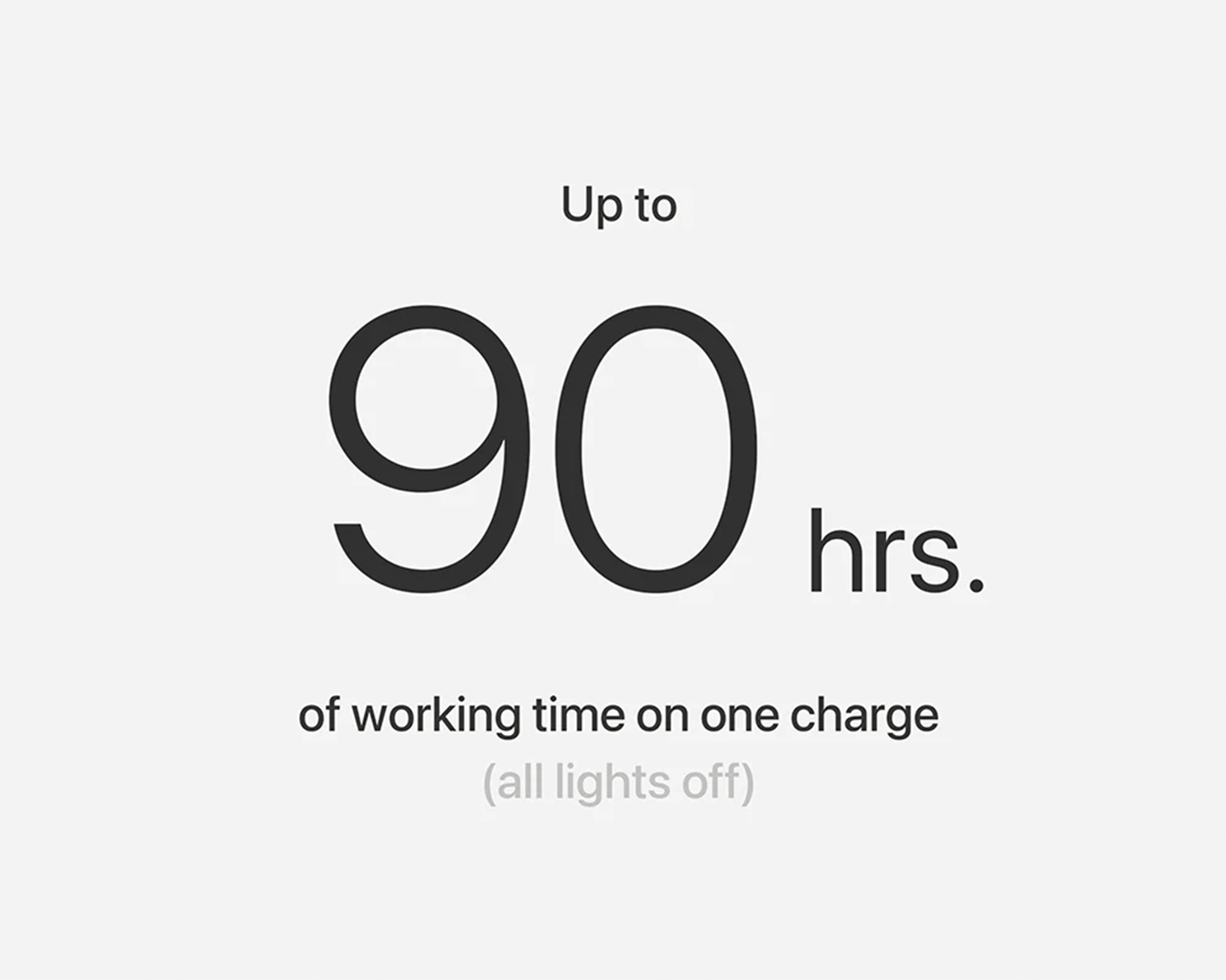Tek şarjla 90 saate kadar kullanım süresi sunar (tüm ışıklar kapalıyken). Günlerce kesintisiz çalışarak şarj derdi olmadan odaklanmanızı sağlar.