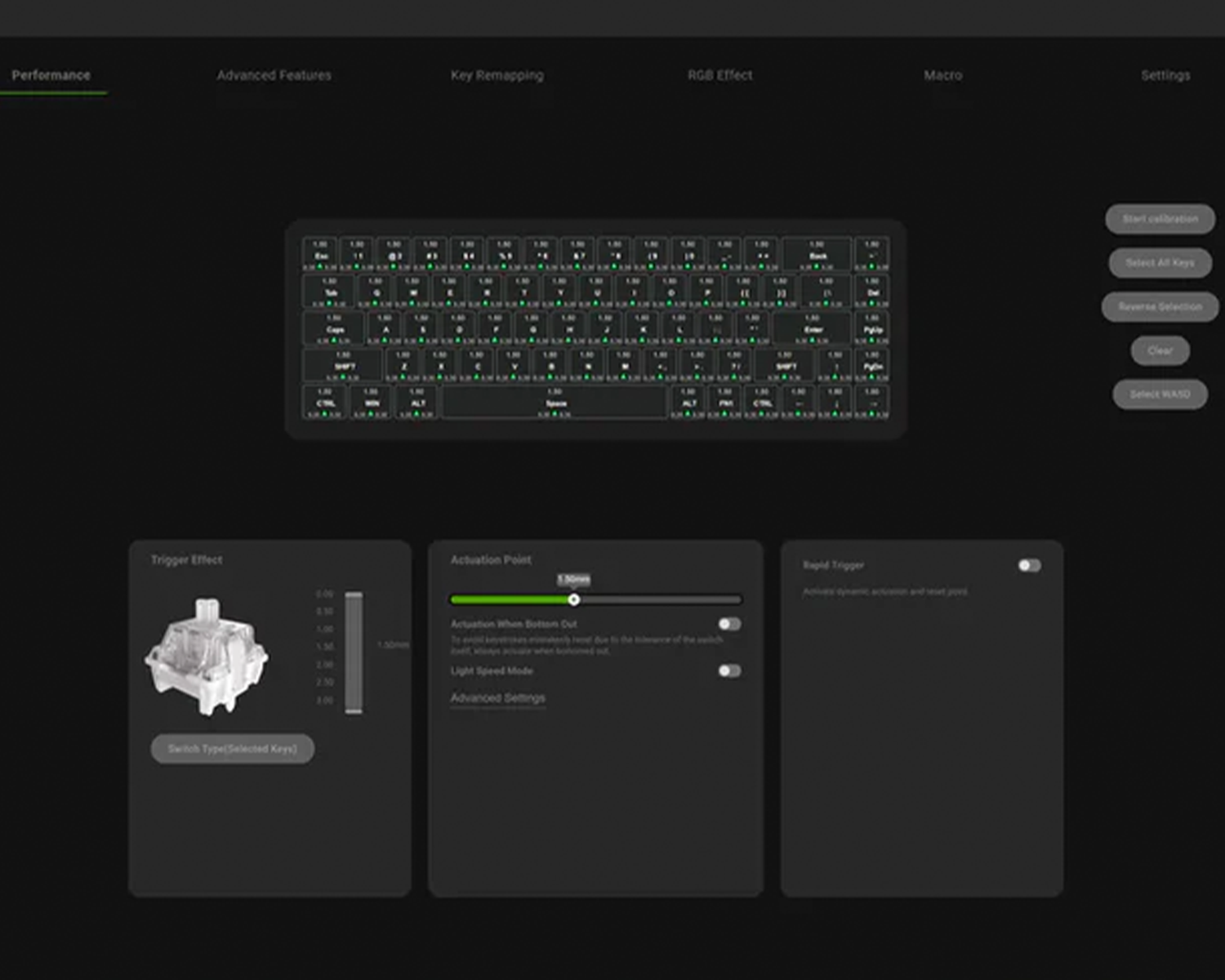 Geleneksel klavyelerdeki sabit basma ve reset noktalarını ortadan kaldırarak her tuşu kendi kullanım tarzına göre ayarlama imkânı sunar.