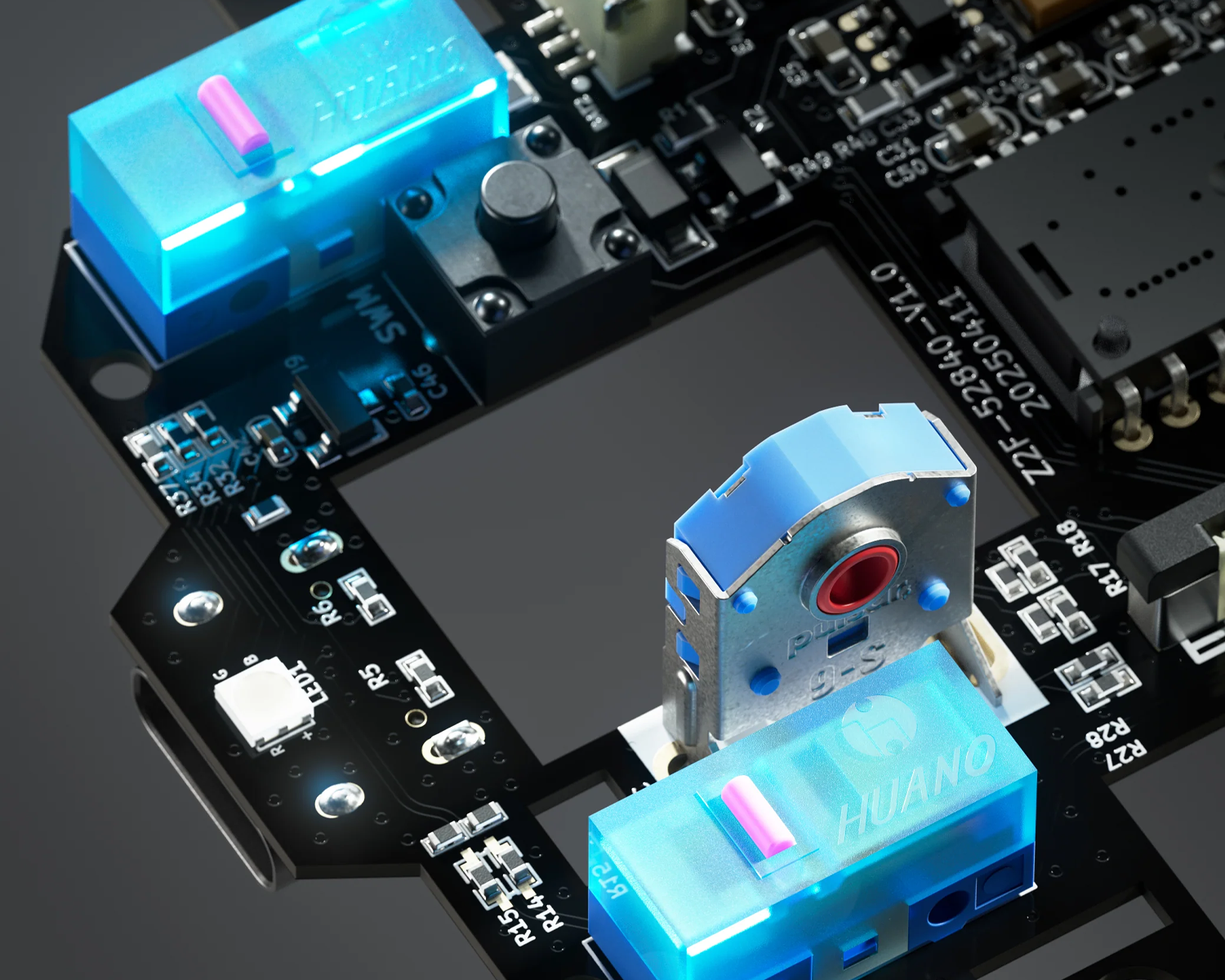 Net ve belirgin tıklama hissi sunan HUANO Blue Pink Dot switch, biraz daha yüksek tetikleme kuvvetiyle daha kontrollü ve isabetli kullanım sağlar.