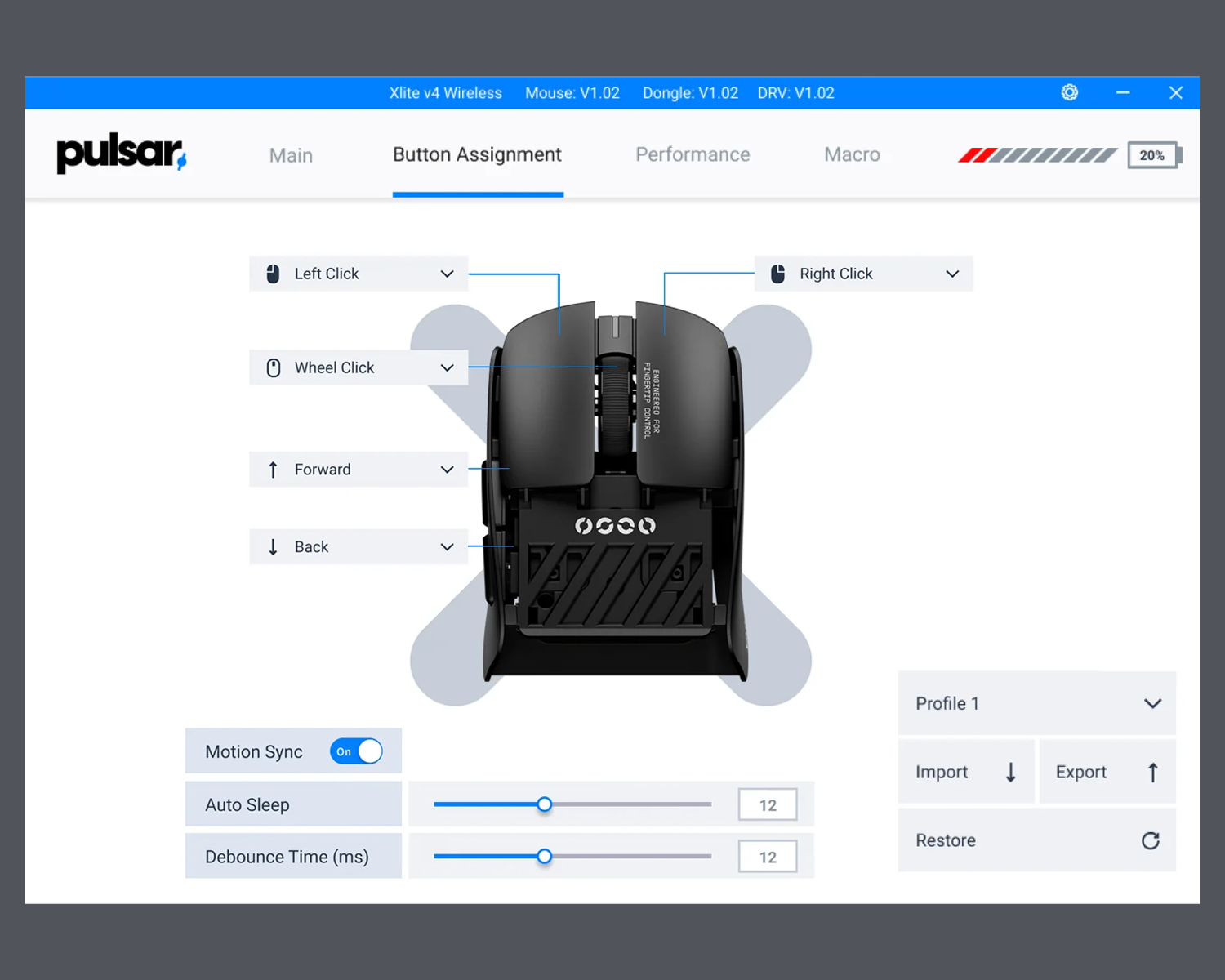 Pulsar’a özel geliştirilen XS-1 sensör; 32.000 DPI çözünürlük, 750 IPS izleme hızı ve 50G ivmelenme değeriyle üst düzey performans sunar. En yoğun rekabet anlarında bile kusursuz hassasiyet ve akıcı takip kabiliyeti sağlar.