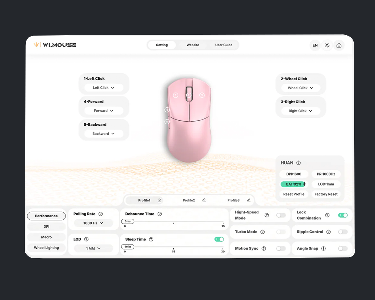 HUAN için özel olarak uyarlanan sektör lideri PAW 3950HS sensör, piksel hassasiyetinde doğruluk ve kusursuz takip performansı sunar. Mikro ayarlamalardan hızlı flick atışlara kadar her hareketi mutlak güvenle algıyarak rekabette kontrolü elinize almanızı sağlar.
