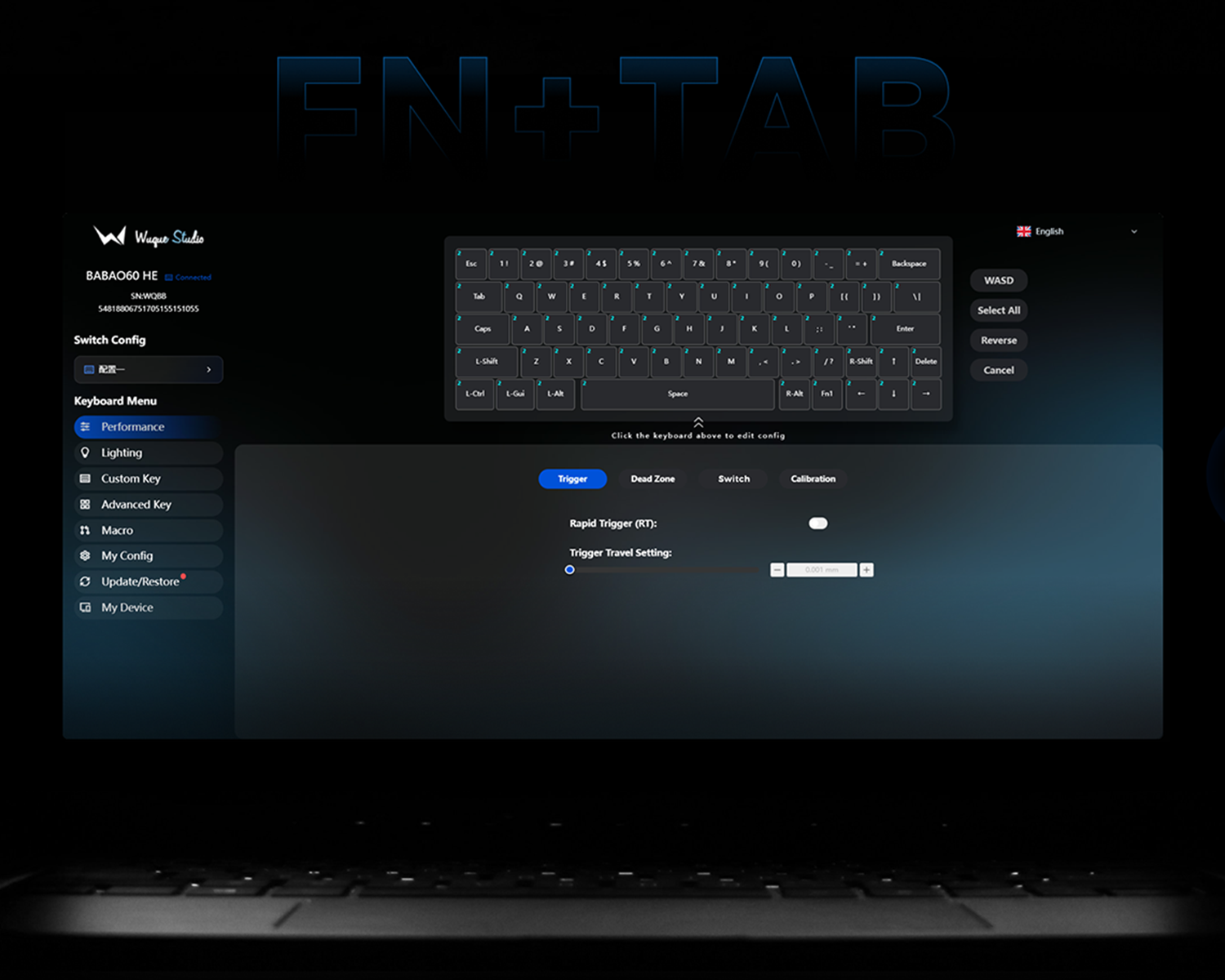 Web tarayıcı üzerinden veya FN + TAB tuş kombinasyonuyla ulaşılabilen yazılımı sayesinde her ayar kolayca yapılabilir.
