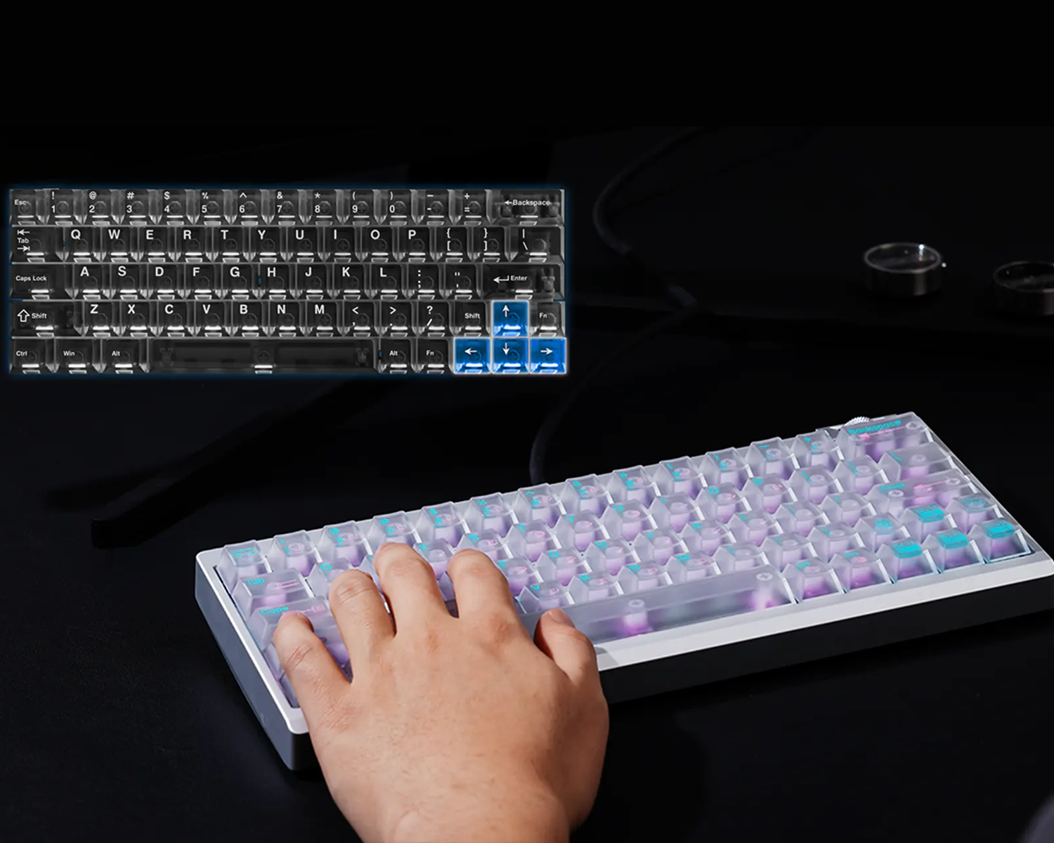 %60 Layout olmasına rağmen yön tuşlarını içerir, böylelikle boyutuna rağmen kullanışlılığından ödün vermez.