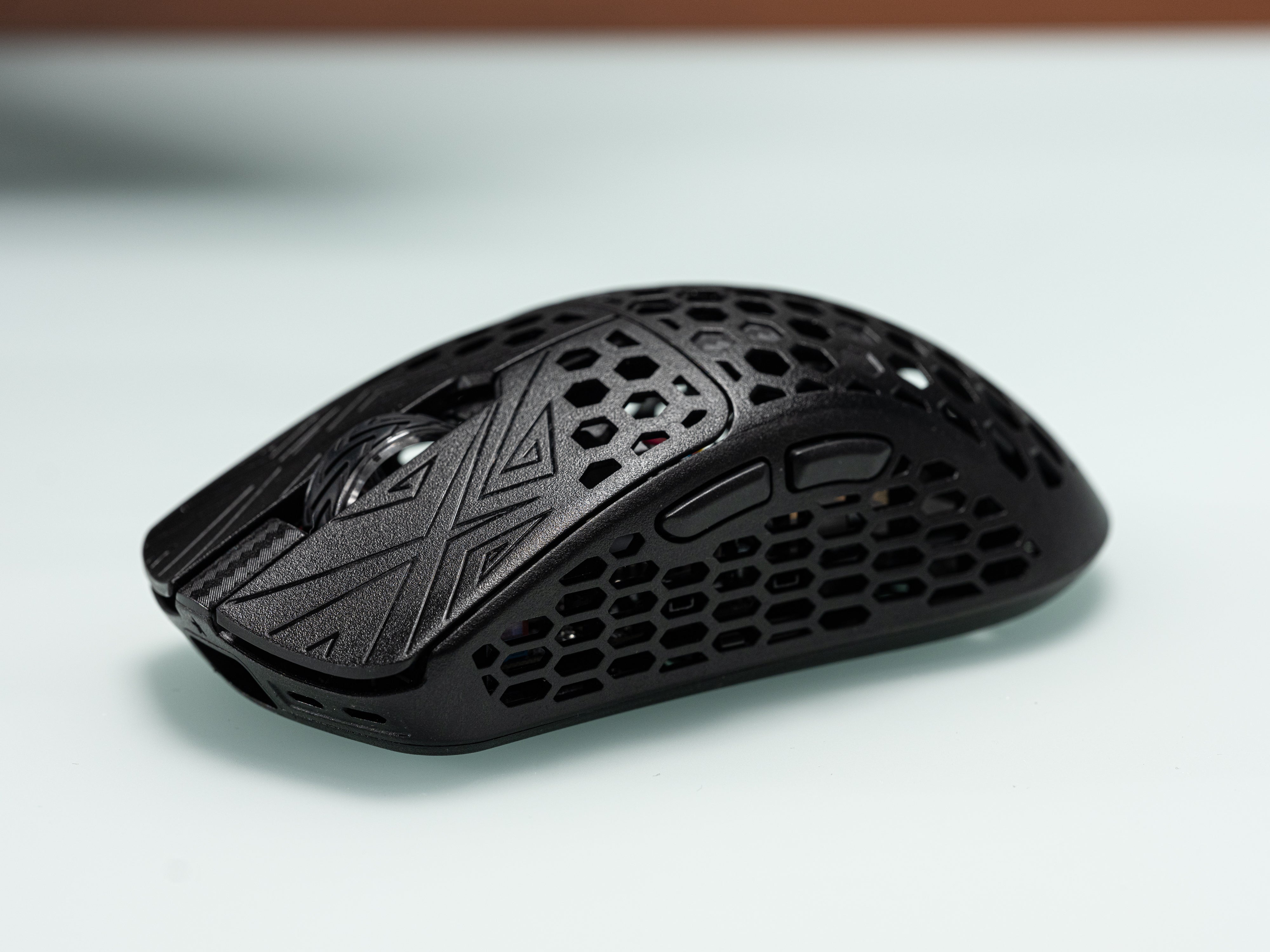 Petek desenli kabuğa sahip bu ultra hafif mouse yalnızca 38 gram ağırlığındadır. Hafifliği sayesinde farenizi daha hızlı hareket ettirebilirsiniz. Aynı zamanda hafif tasarım ile birlikte bileğinizde de daha az yorgunluk hissedeceksiniz.