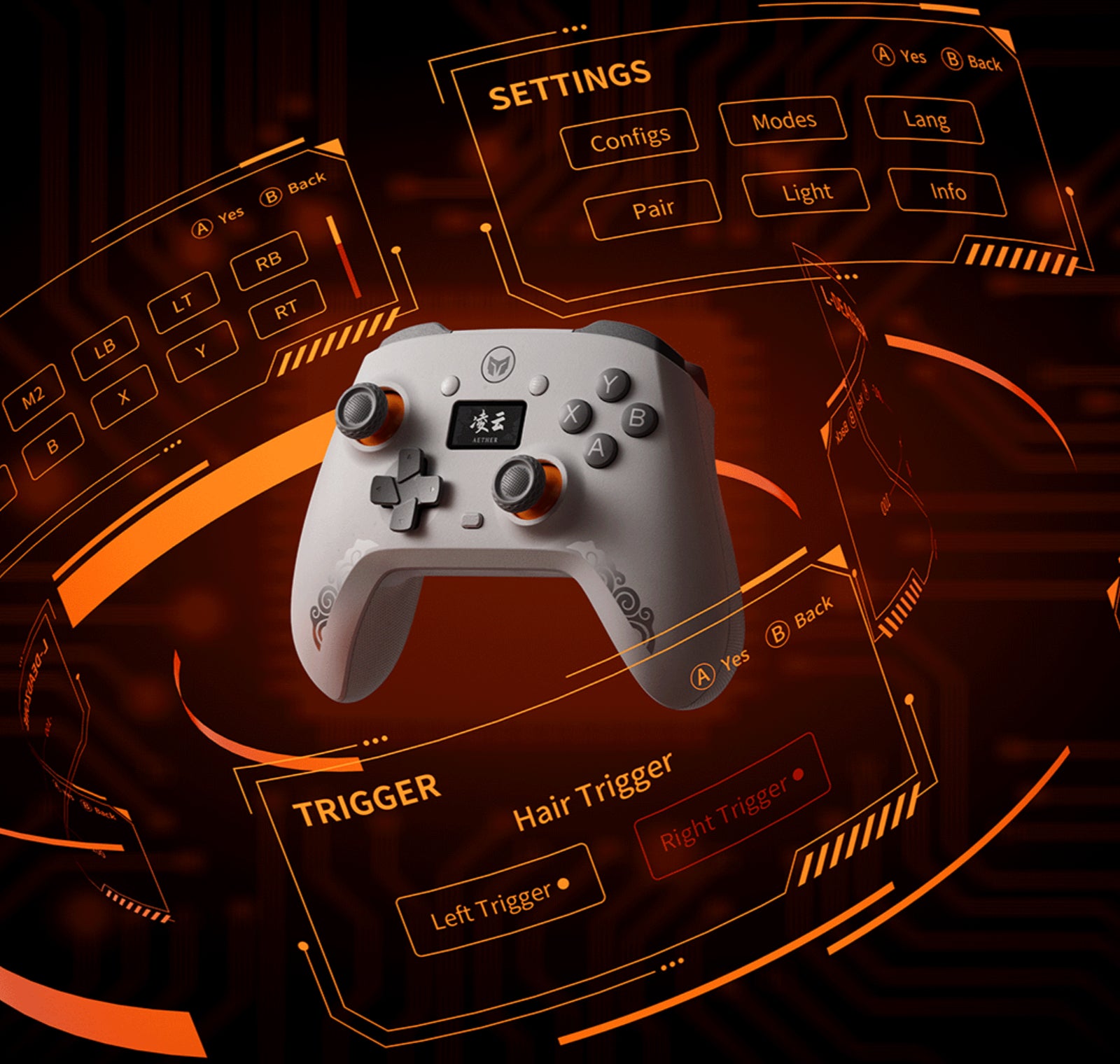 Aether'in sahip olduğu küçük ekran sayesinde ek yazılım indirmeden pozitif ve negatif değerlerde deadzone ayarı, tuş atamaları, trigger mod değişimi gibi birçok ayar anında yapılabilir.