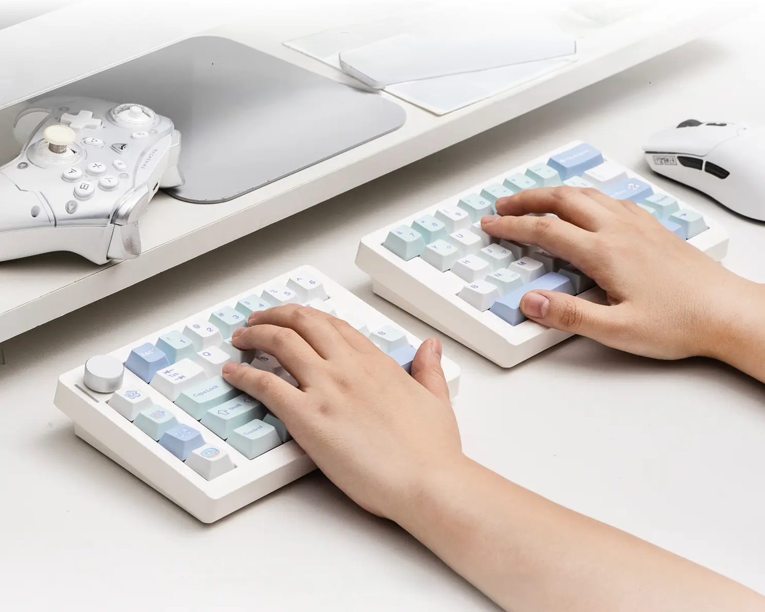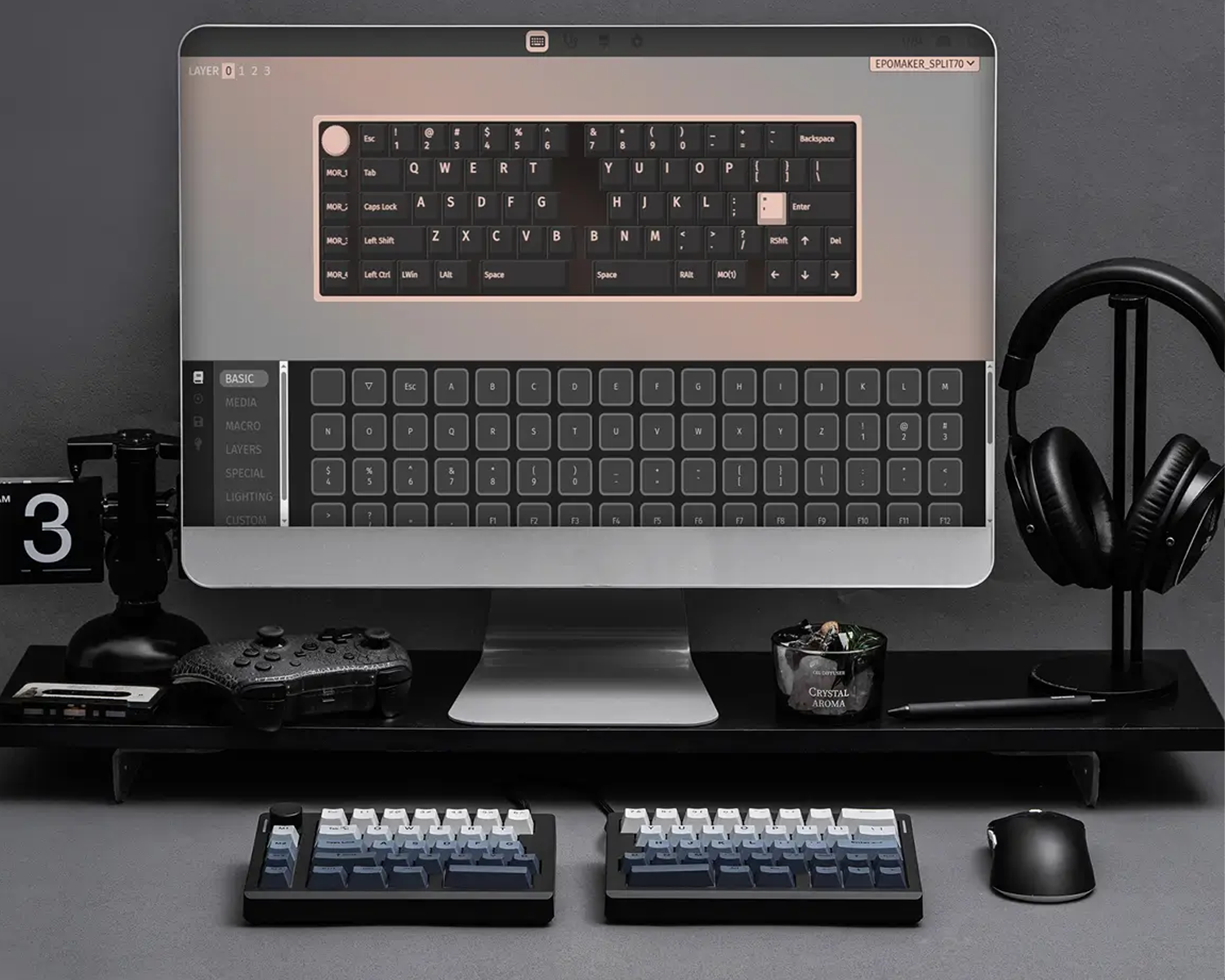 Wisteria Linear V2 Switchler fabrikadan yağlı gelmektedir ve akıcı, yumuşak bir hissiyat sunar. Split70'de bulunan kontrol knobu sayesinde parlaklık, ses gibi ayarlamaları kolayca yapabilirsiniz.