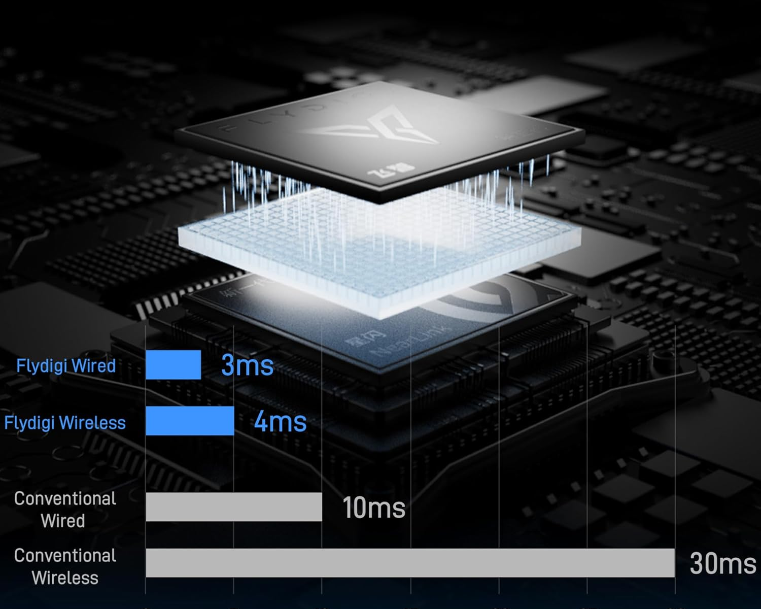 216MHz işlemci ve Flydigi’nin kendi geliştirdiği algoritma sayesinde joystick gecikmesi minimuma indirilir. Kablolu modda 3ms, kablosuz modda 4ms gecikme ile anında tepki ve yüksek stabilite sunarak oyun boyunca maksimum kontrol sağlar.