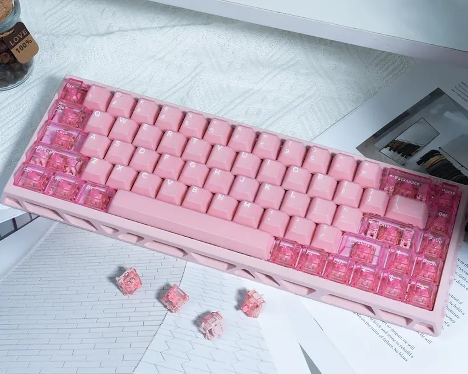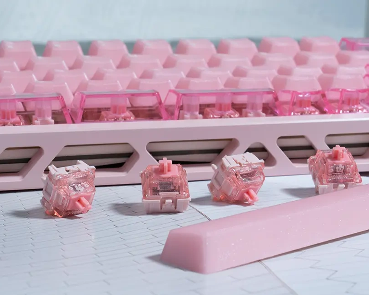 Sakura temasına sahip Gateron Jade Sakura switchler, alt kısmının kapalı yapıya sahip olması ile thocky sese sahiptir.