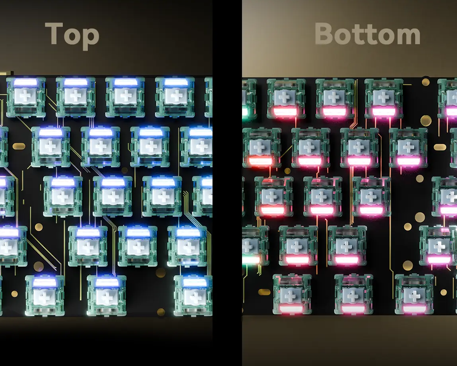 Üst ve alt yüzeyde konumlanan çift taraflı ledler, tüm aydınlatma efektleriyle tam uyumludur. 360° sürükleyici ışık alanı, katman hissini güçlendirerek dengeli bir parlama sunar.