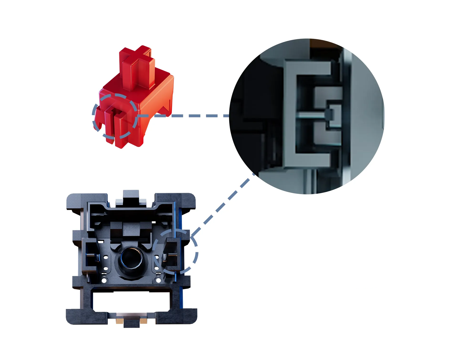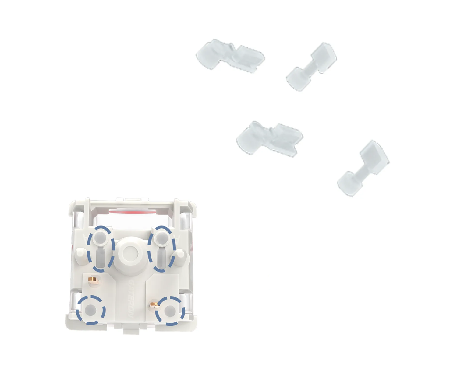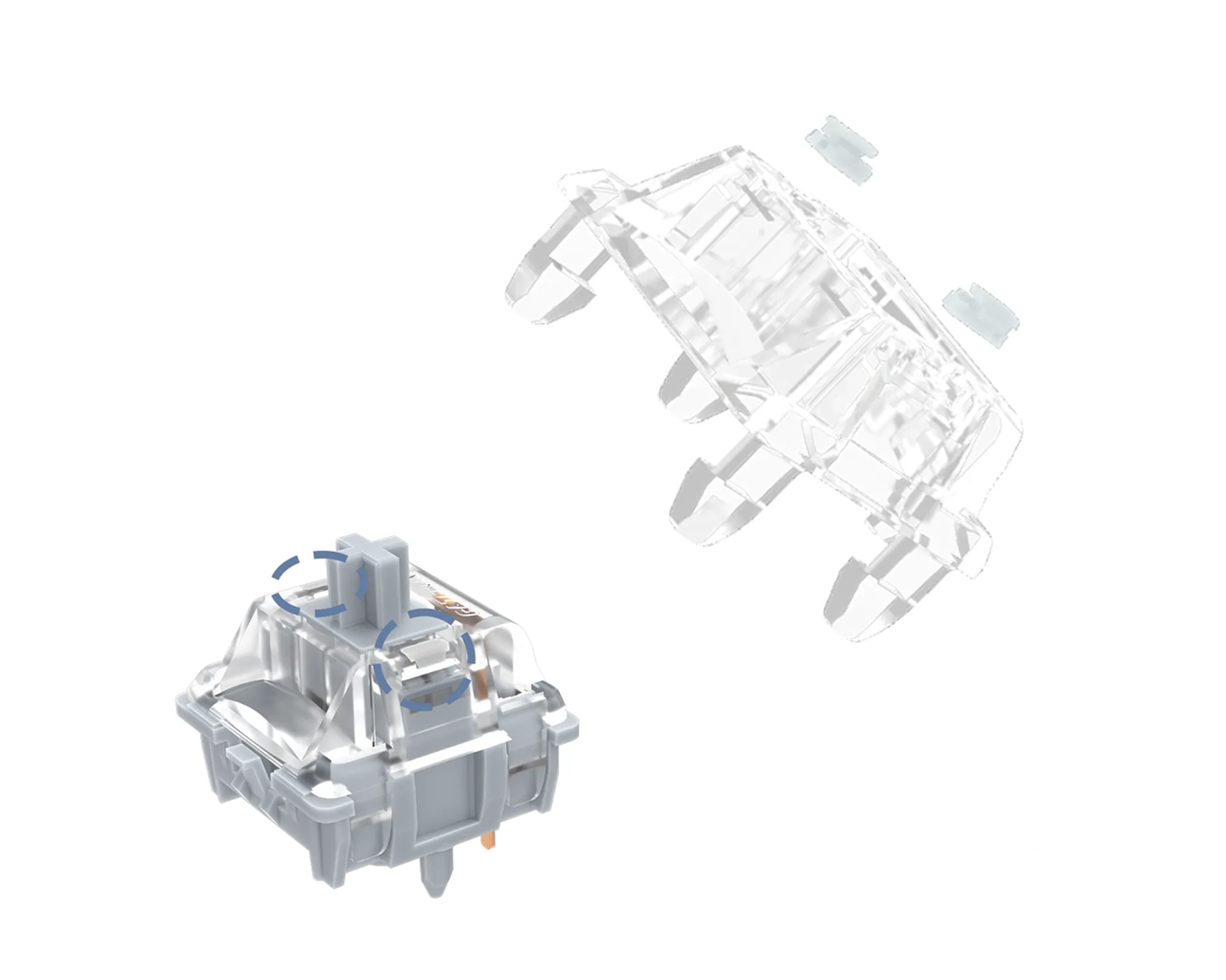 Gateron Zero Degree switchler sessiz olması amacıyla tasarlanmış olup üst parçada sönümleme amaçlı 2 adet pad bulunur.