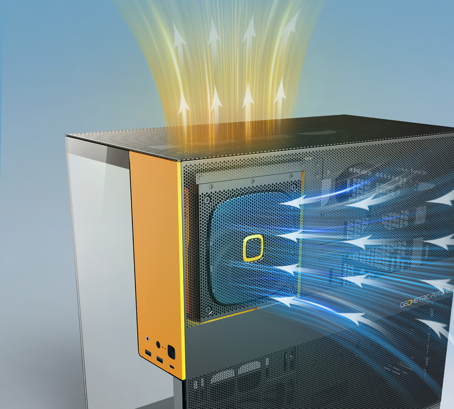 Mesh yapısı sayesinde arkadan hava alır ve güç kaynağı gibi dual-chamber kasalarda arkada kalan parçalar da hava akışına dahil olur.