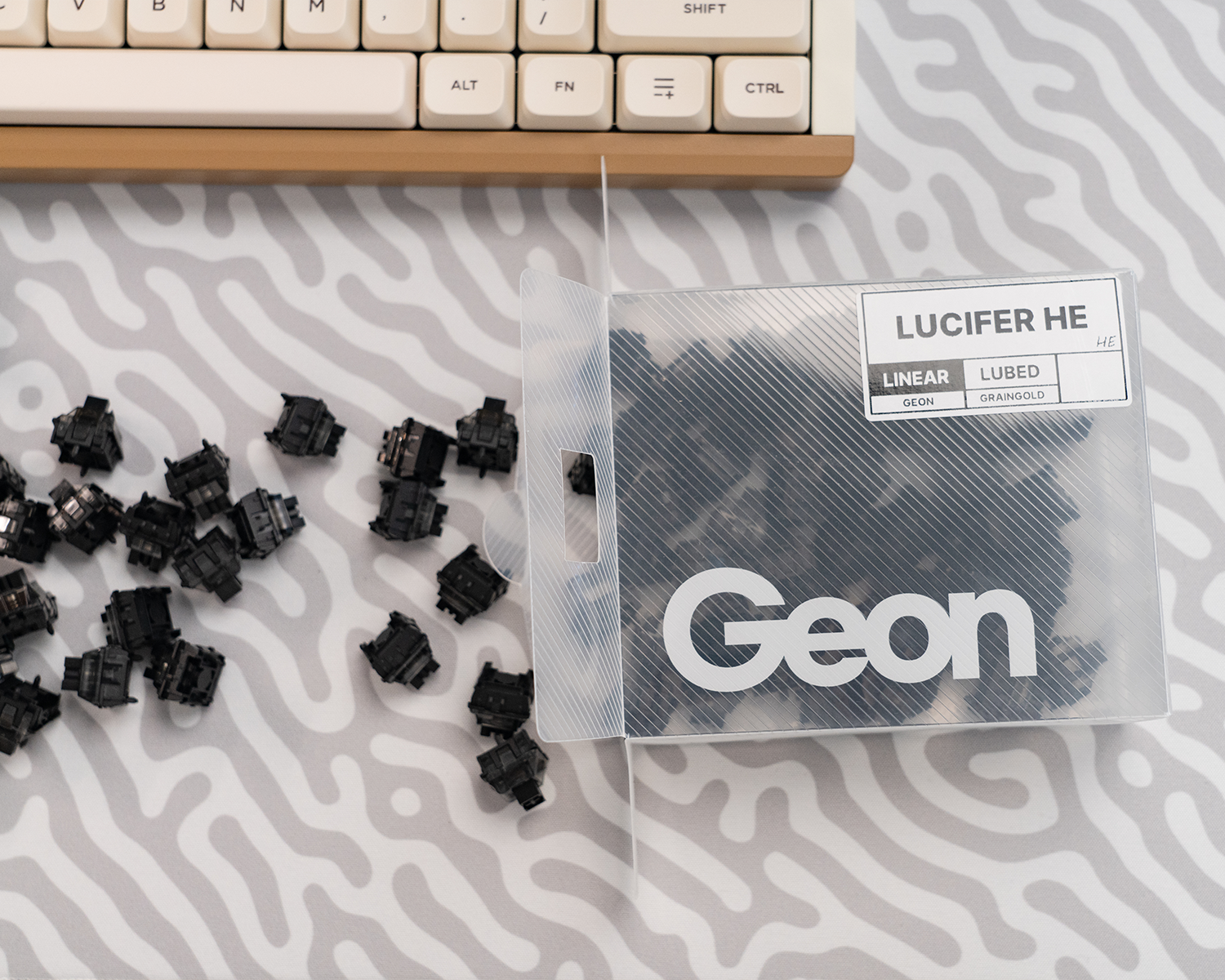 Fabrikasyon yağlı bir şekilde gelen Lucifer switchler, smooth bir yazım deneyimi sunar.