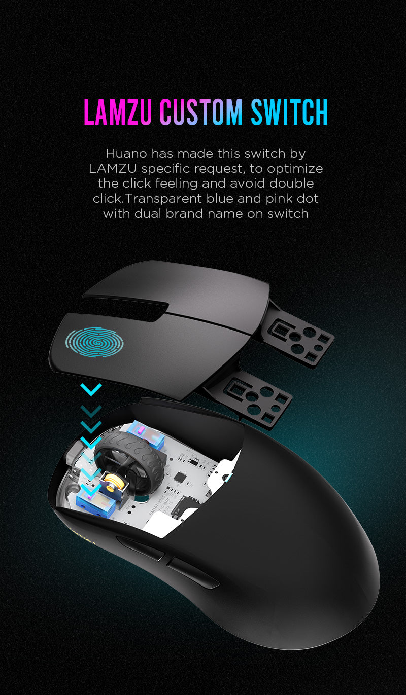Atlantis OG Pro, çift tıklama sorununu gideren ve tıklama hissiyatını optimize eden özel yapım Huano switchler içerir.