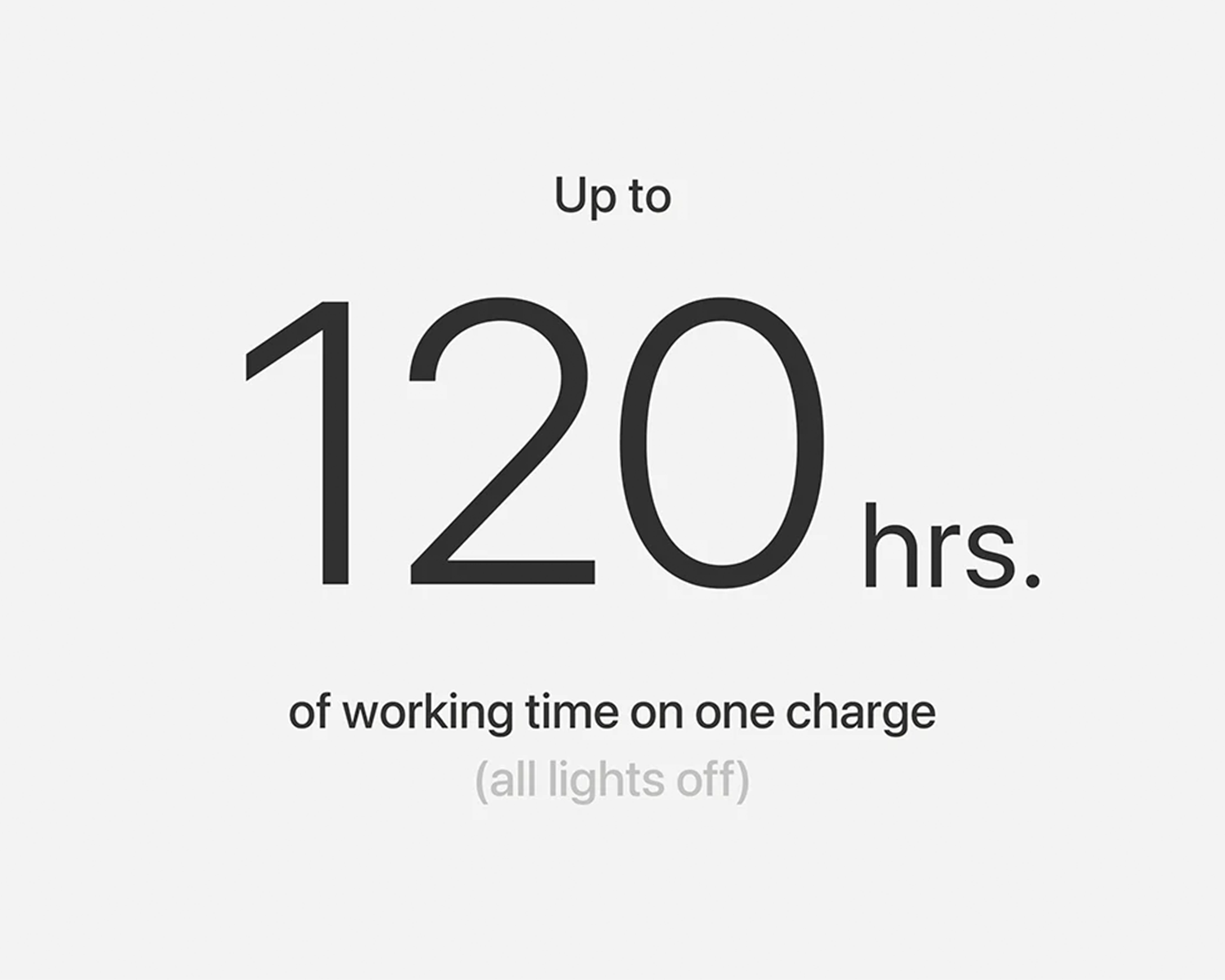 Tek şarjla 120 saate kadar kullanım süresi sunar (tüm ışıklar kapalıyken). Günlerce kesintisiz çalışarak şarj derdi olmadan odaklanmanızı sağlar.