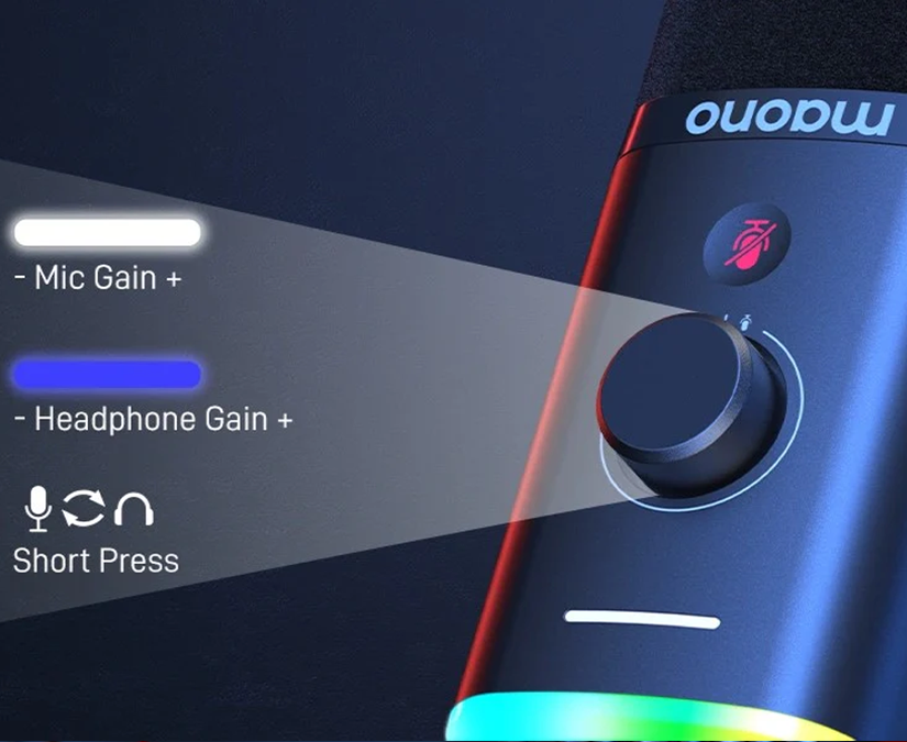 Mikrofon ve kulaklık girişine bağlı kulaklığın kazancını aynı tuştan hızlıca değiştirerek arttırıp azaltabilirsiniz.
