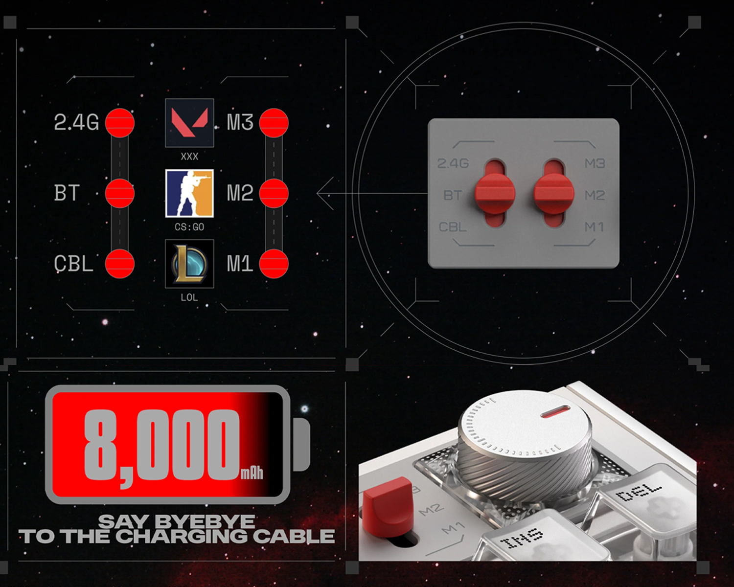 Kablolu, 2.4G Kablosuz ve Bluetooth ile 3 farklı şekilde kullanılabilir. Ayrıca üzerinde bulunan 3 profil ayarı sayesinde istediğiniz profili ayarlayıp senaryolara uygun düzenleyebilirsiniz.