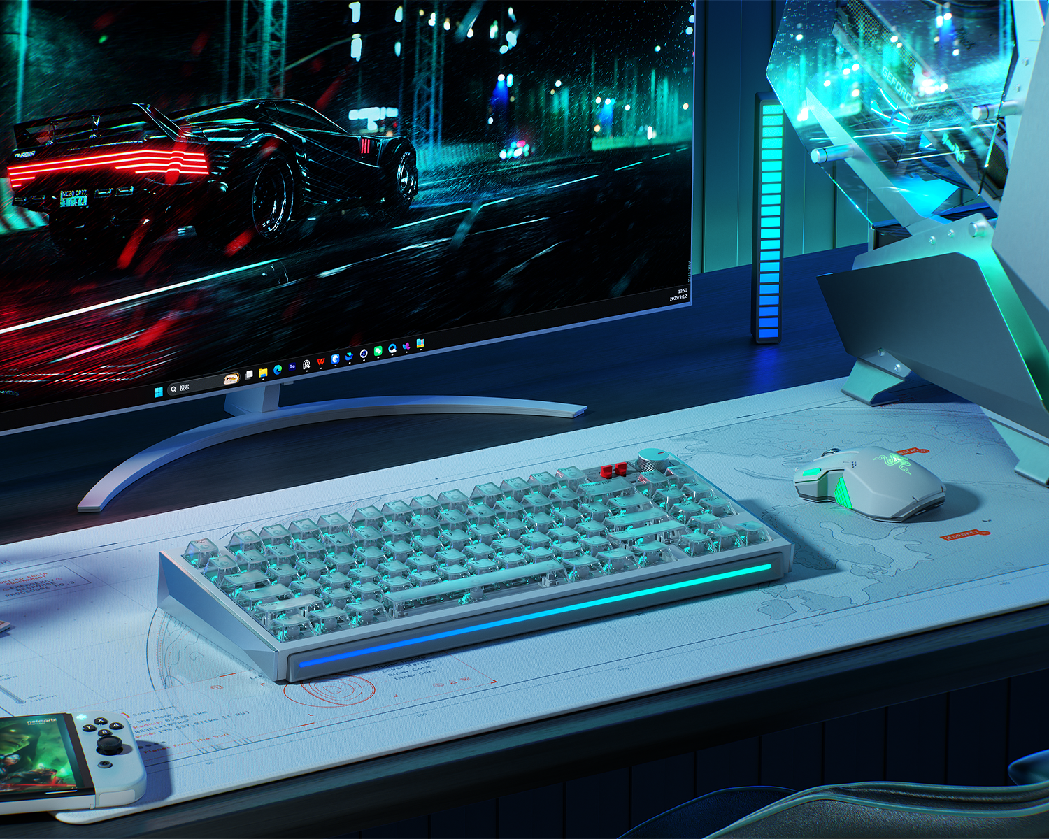Gelecekten ilham alan fütüristik tasarımıyla masanıza şıklık katarken alt kısmında bulunan RGB bar ile etkileyici bir ambiyans yaratır.
