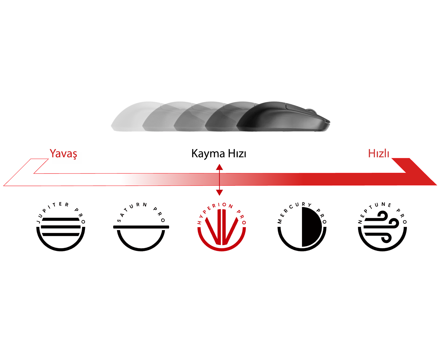 Hyperion Pro, pürüzsüz ve tutarlı bir glide sunarken güvenilir durdurma gücüyle hız ve hassasiyet arasında kusursuz bir denge sağlar. Akıcı tracking performansı ve dengeli hissi sayesinde, oyun türü fark etmeksizin kontrol ve tutarlılık arayan oyuncular için ideal bir tercihtir.