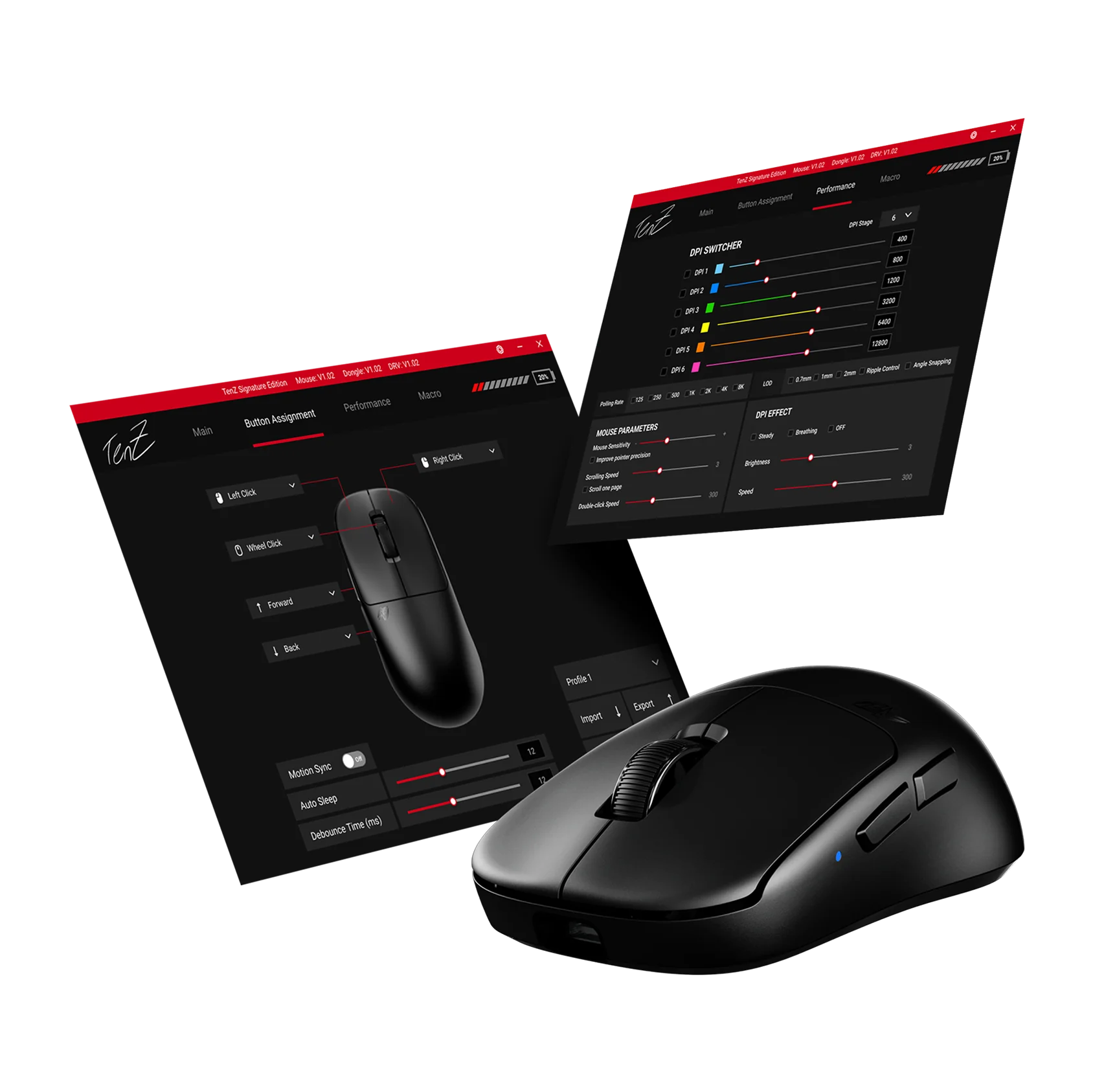 TenZ Signature Edition'ın özel yazılımıyla DPI, polling rate ve tuş işlevleri kolayca ayarlanabilir.