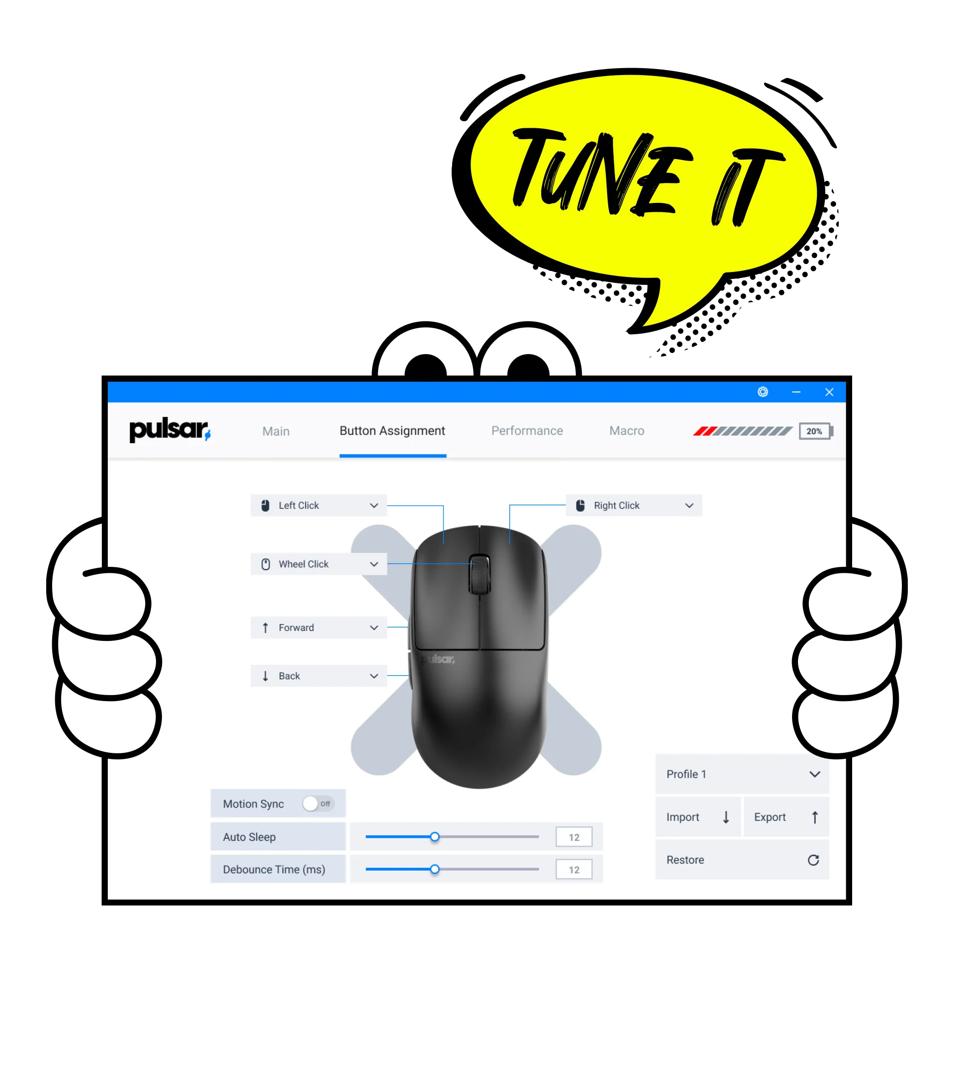 Pulsar'a özgü olan XS-1 sensör, 32.000 DPI çözünürlük, 750 IPS tracking hızı ve 50g'lik ivmelenme ile benzersiz bir performans sunar.