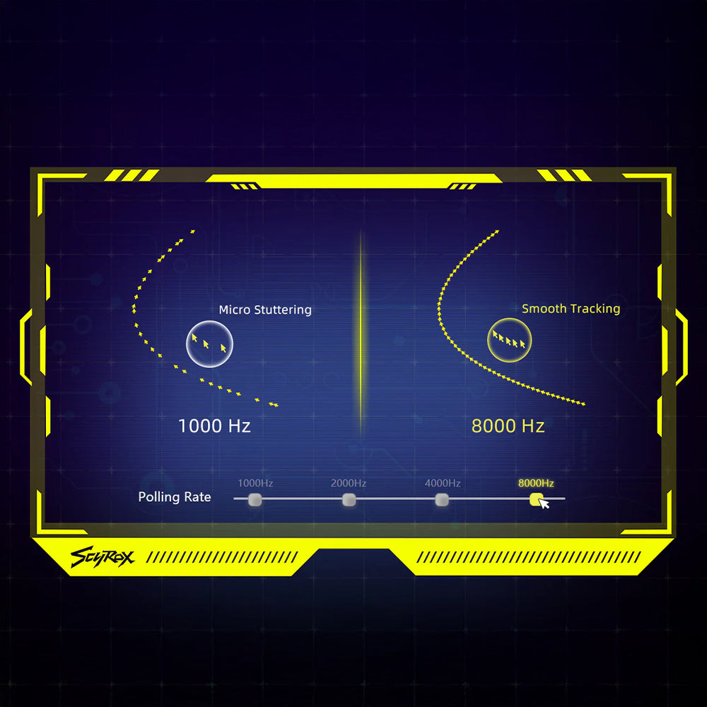PixArt'ın en güncel sensörü PAW 3950'yi barındıran Scyrox V8, 8000 Hz polling rate desteği ile çok daha hassas ve doğru bir tracking deneyimi sunar.