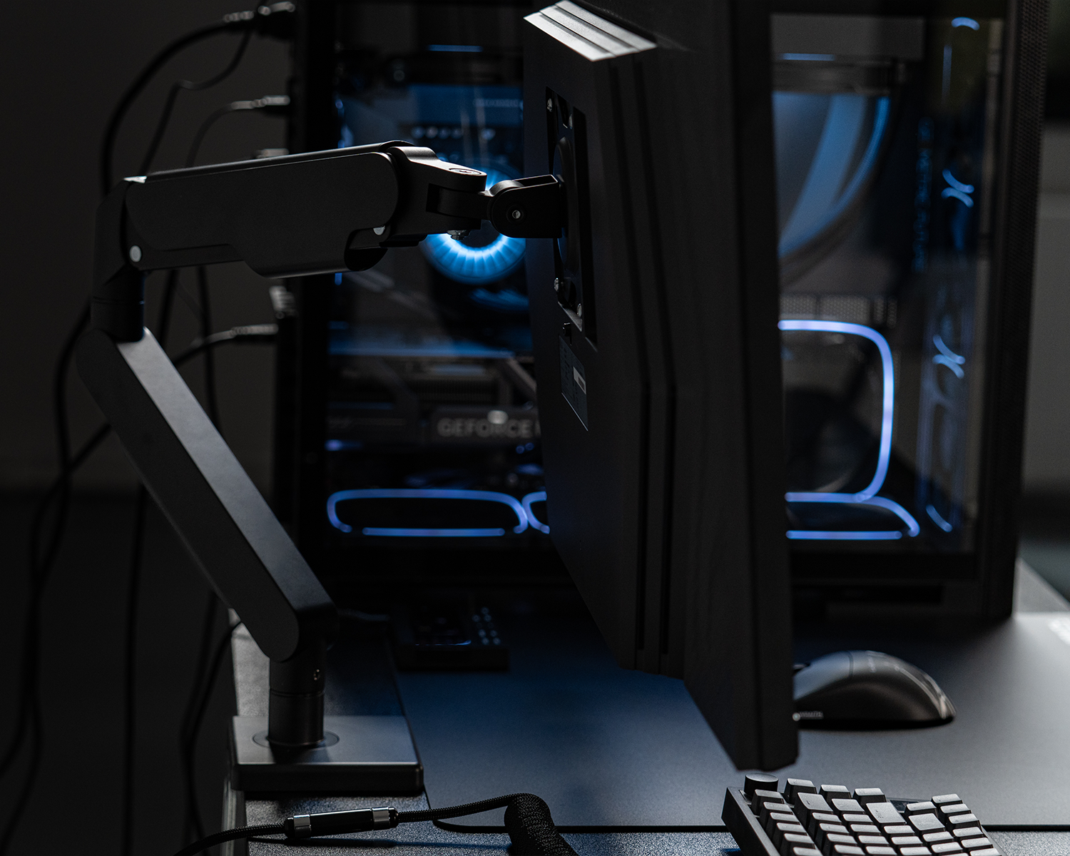 Monitör ağırlığını dengede tutarak stabil durmasını sağlar. Ekran yüksekliği, açısı ve eğimi minimum fiziksel efor ile hassas bir biçimde ayarlanabilir.