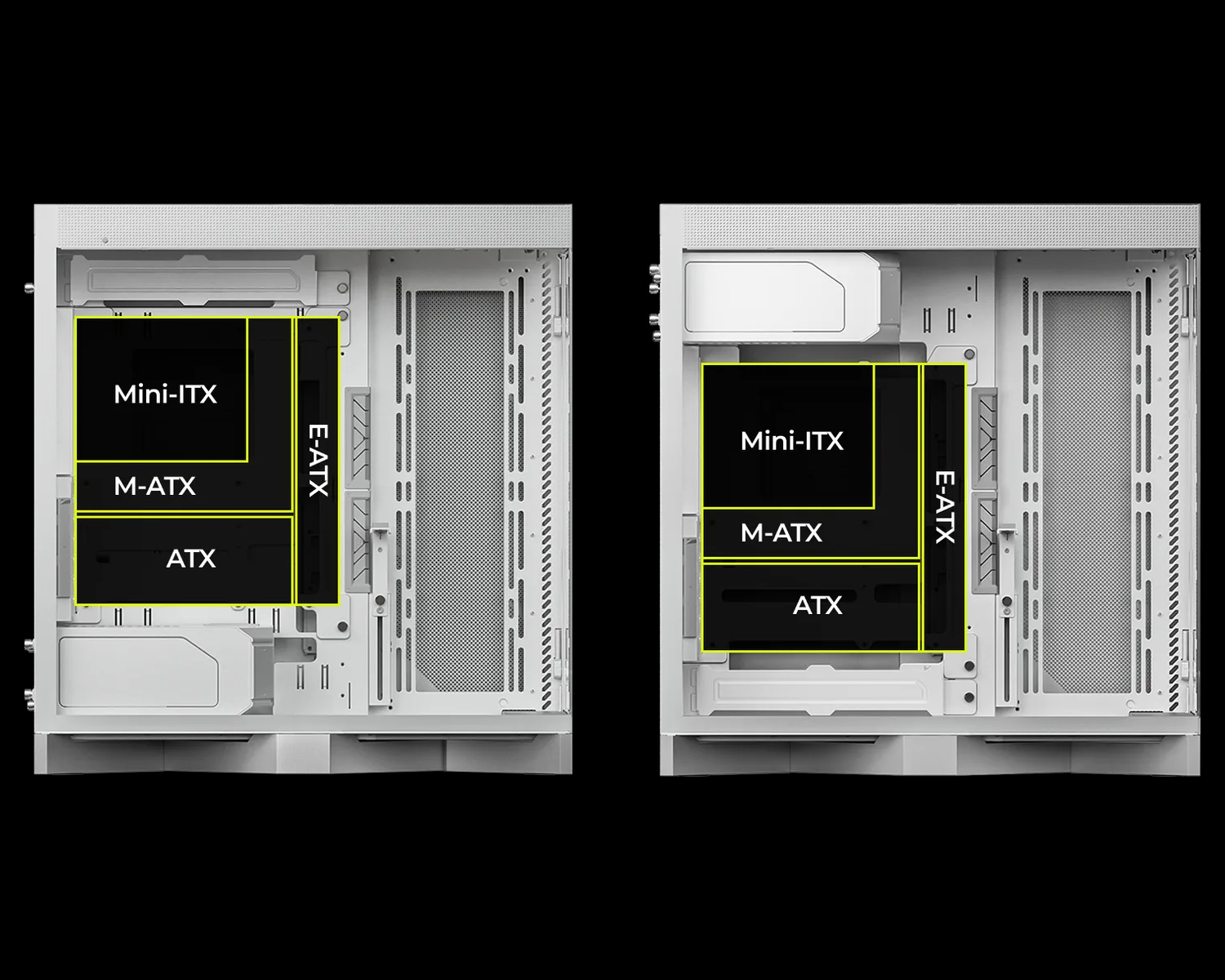 E-ATX (maksimum 280 mm) / ATX / Micro-ATX / Mini-ITX