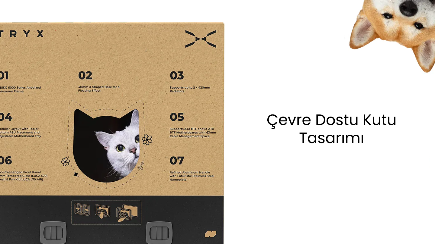 CNC işlenmiş alüminyumdan üretilen tutma kolu, hem dayanıklılığı hem de premium hissi bir arada sunar. TRYX temalı özel isim plakası ise kasaya özel bir dokunuş katar.