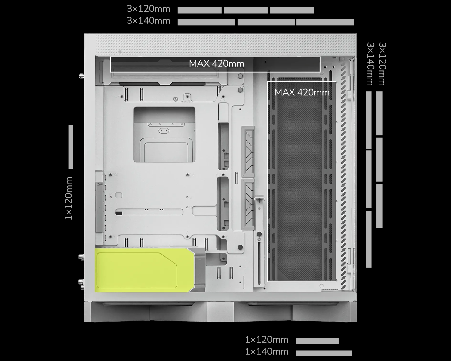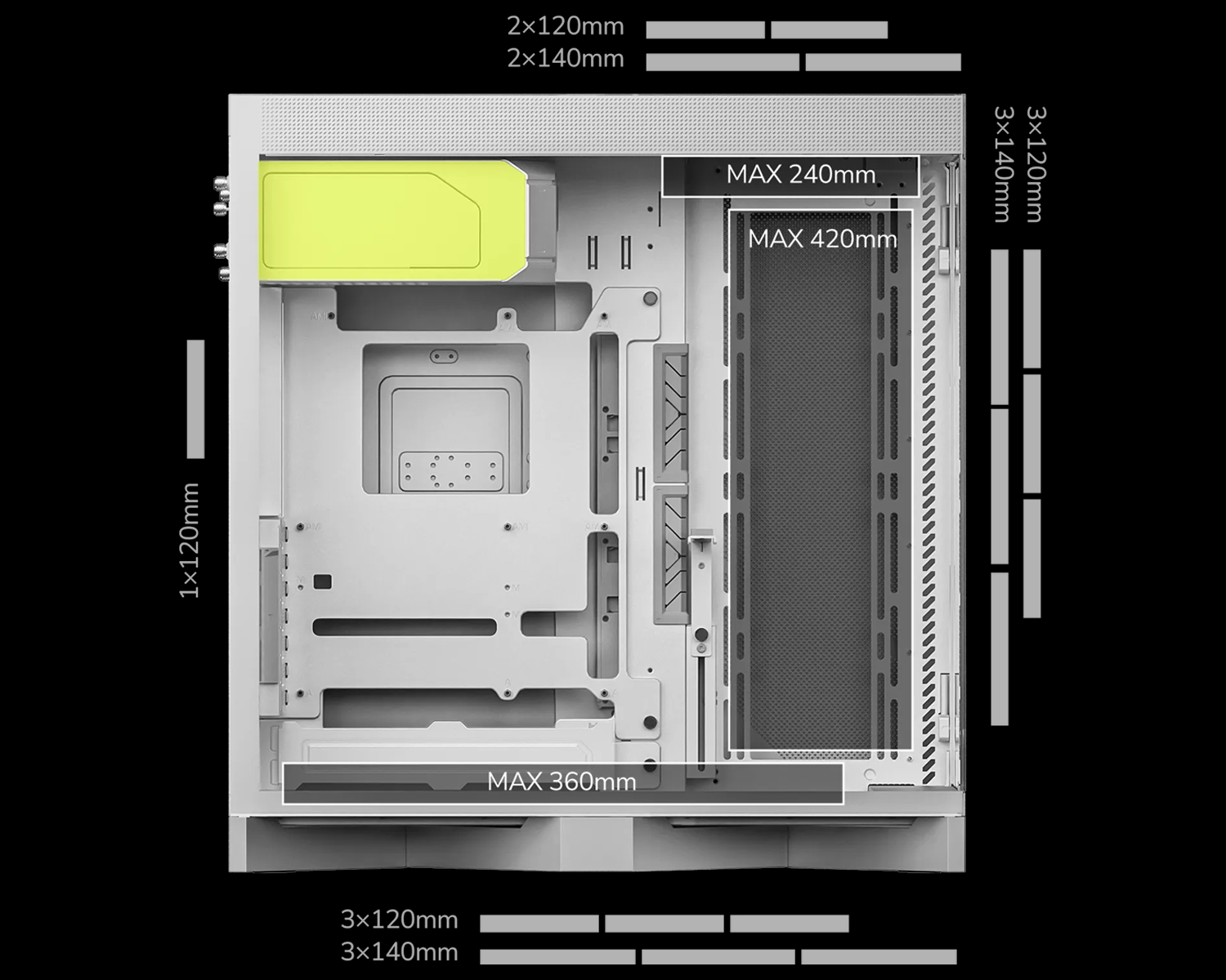 Yan: 3 x 120 mm / 3 x 140 mm