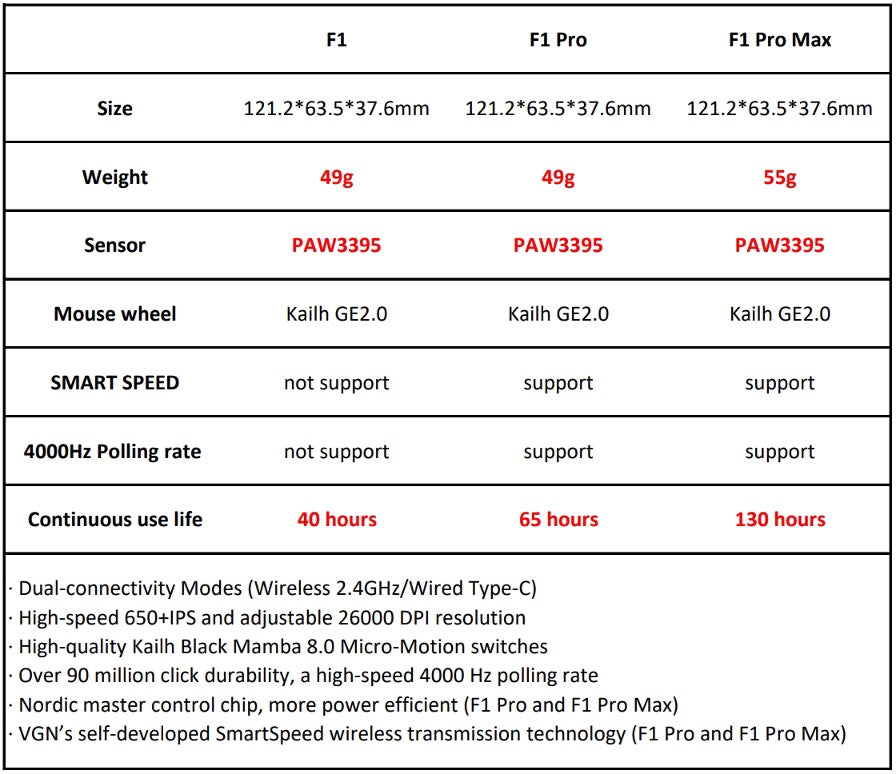 49 gram (F1 ve F1 pro), 55gram (F1 pro max)