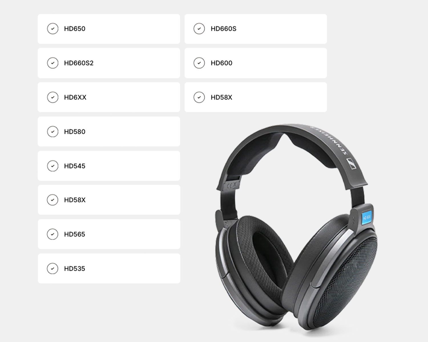 Sennheiser HD6XX ve HD5XX serisi ile mükemmel uyum sağlar. Diğer kulaklık marka ve modelleri ile uyumlu değildir. Uyumlu olan modelleri tablo üzerinden kontrol ederek size uygun tercihi yapabilirsiniz.