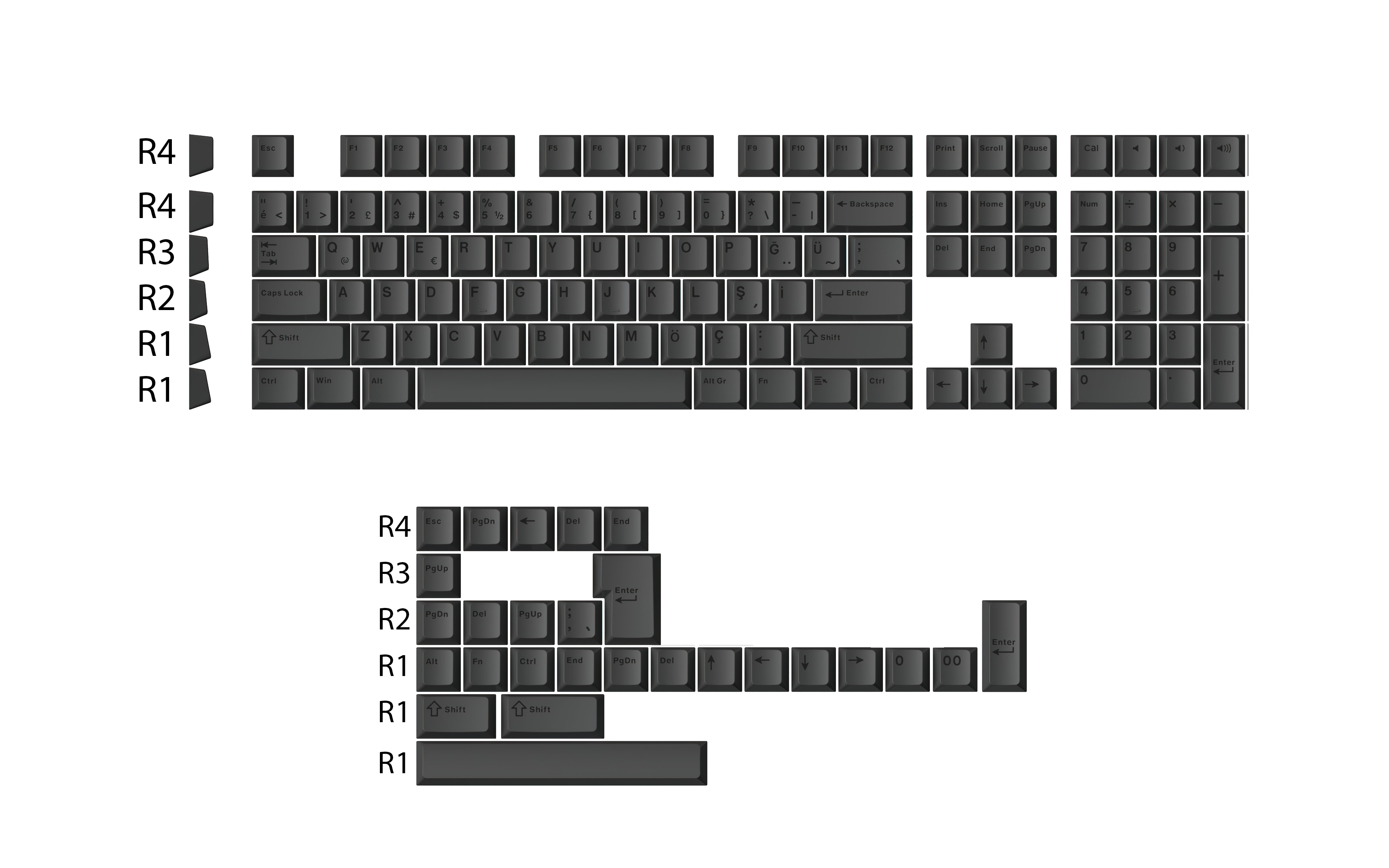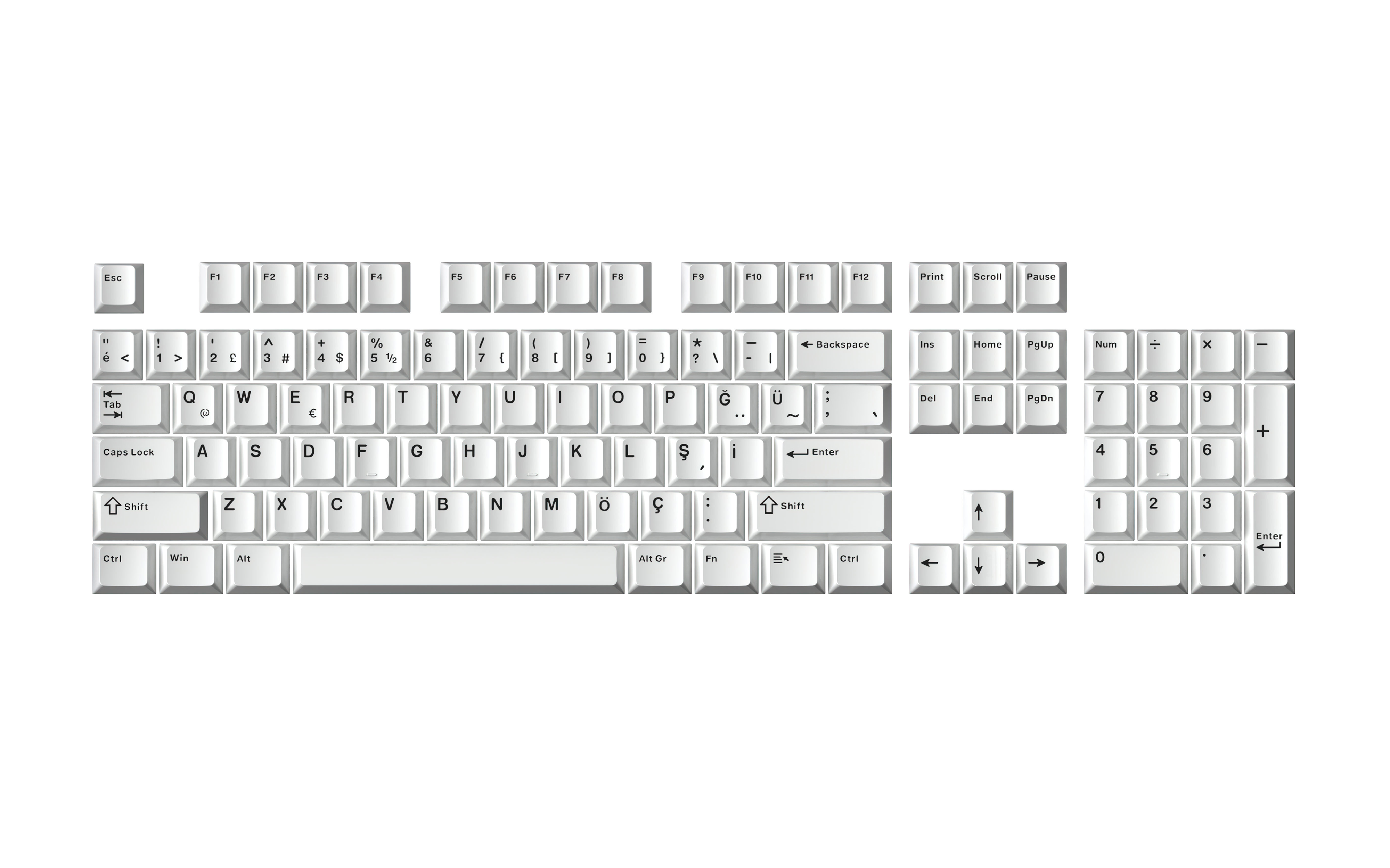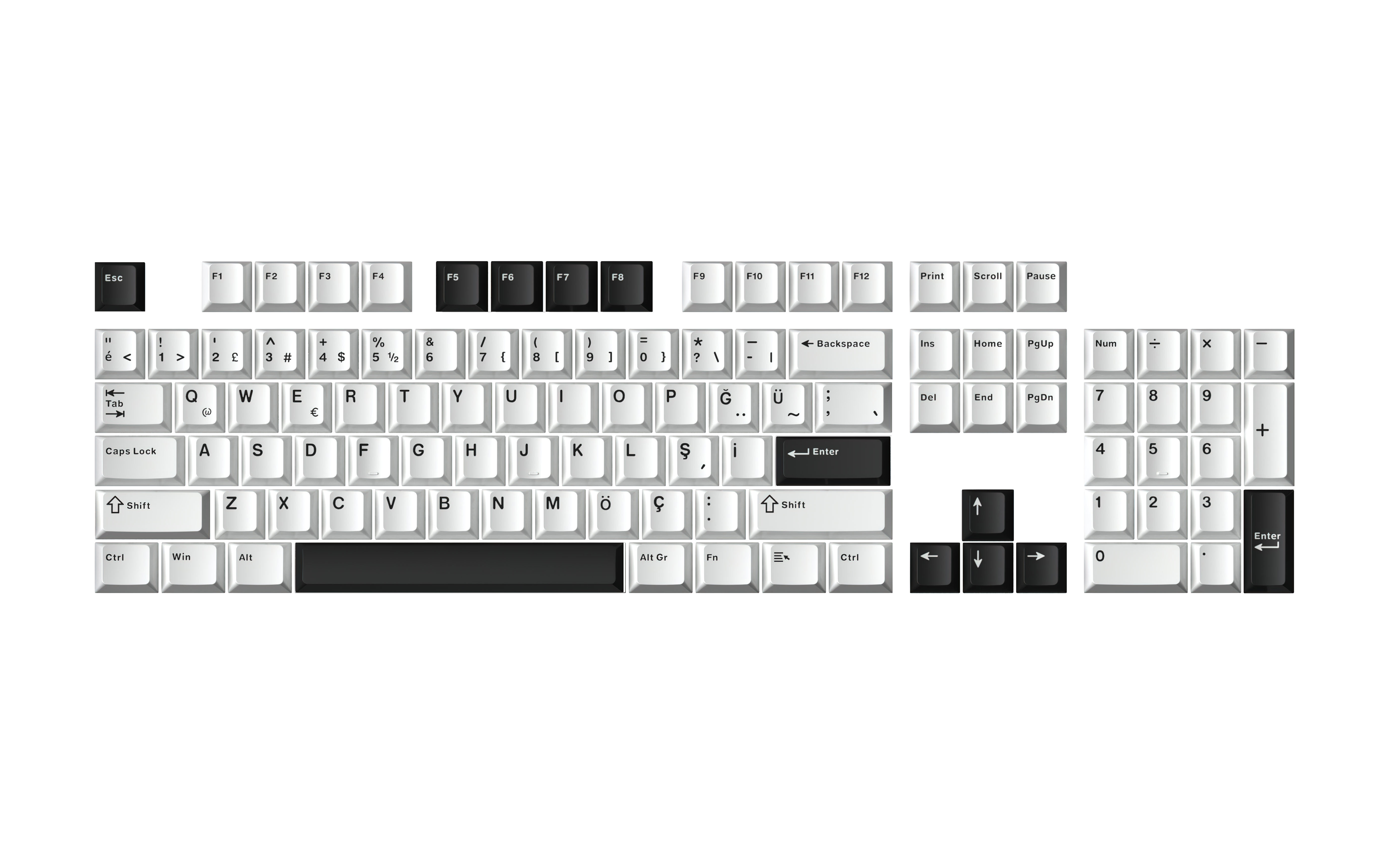 Bahtınız kadar kara bu tuş takımı sadece siyah veya koyu gri kasalar için üretildi. Klavyesinde açık bir renk görmek istemeyen siyah setup düşkünleri bu seti çok sevecek.