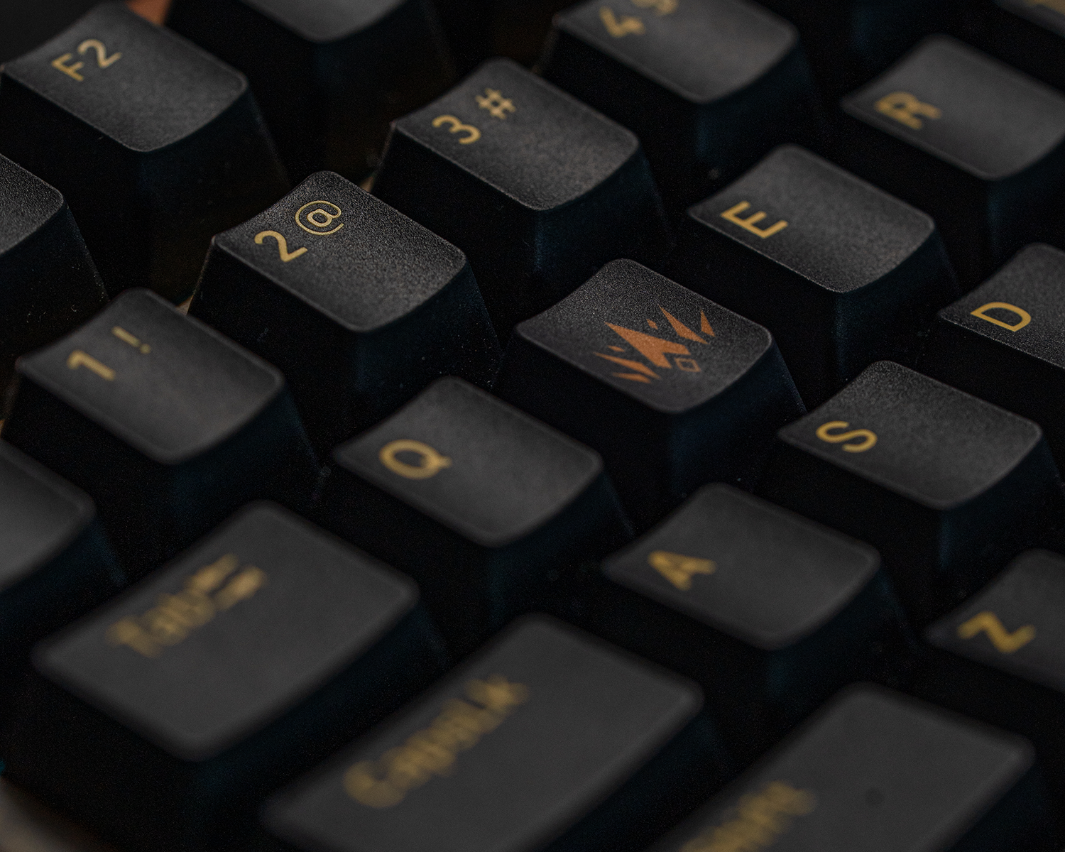 Çift atış yöntemi ile üretilen PBT tuş başlıkları, kullanım esnasında oluşabilicek eskime veya dökülme gibi geleneksel problemler yaşatmaz.